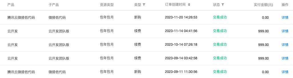 这里可以看到,套餐最高的级别是999的那个,我们其中一个小程序已经购买了最贵的套餐,现在就遇到这个问题,超出套餐的部分价格会变得很贵。