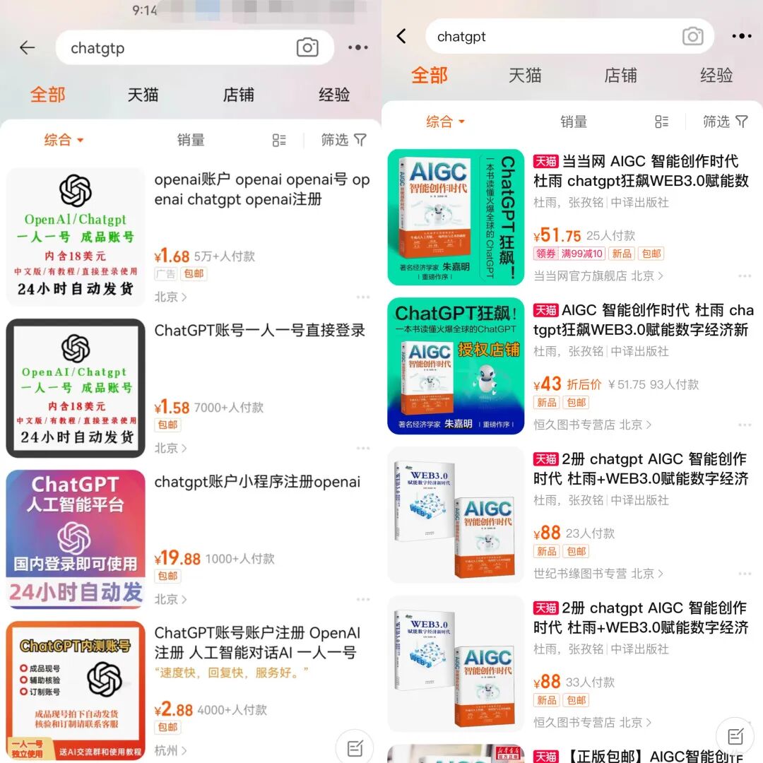 以淘宝为例,在2月9日及之前,都有不少卖账号的链接,高的月销5W+,但如今这些商品链接都已经全部下架,只有书籍相关的内容。