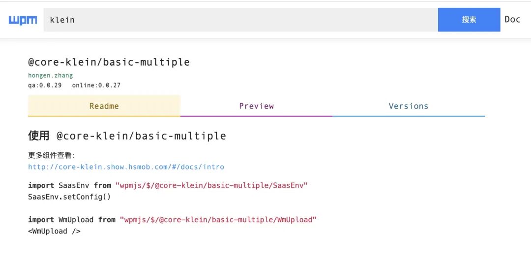 为了进一步共享资源、提升效率, 微盟技术团队抽象出了 WPM。WPM 很容易理解, 可以简单的视为一个网络版本的 npm,使用 WPM 包不需要安装、不需要参与应用的构建过程, 每个包有自己的版本、环境, 独立构建和发布。