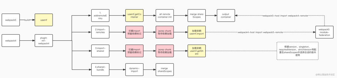 简单的解释下实现原理,webpack4 和 webpack5 是怎么实现互通的呢? 有三个关键点: