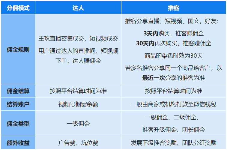 达人的流量来源依赖公域推荐,还要懂得如何获取公域流量,推客主要维系的是自己朋友圈的亲朋好友,依赖熟人关系。