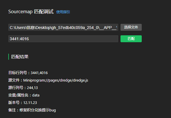 选中 _APP_文件中的 app-service.map文件,输入行号 3441:4016,匹配结果如下: