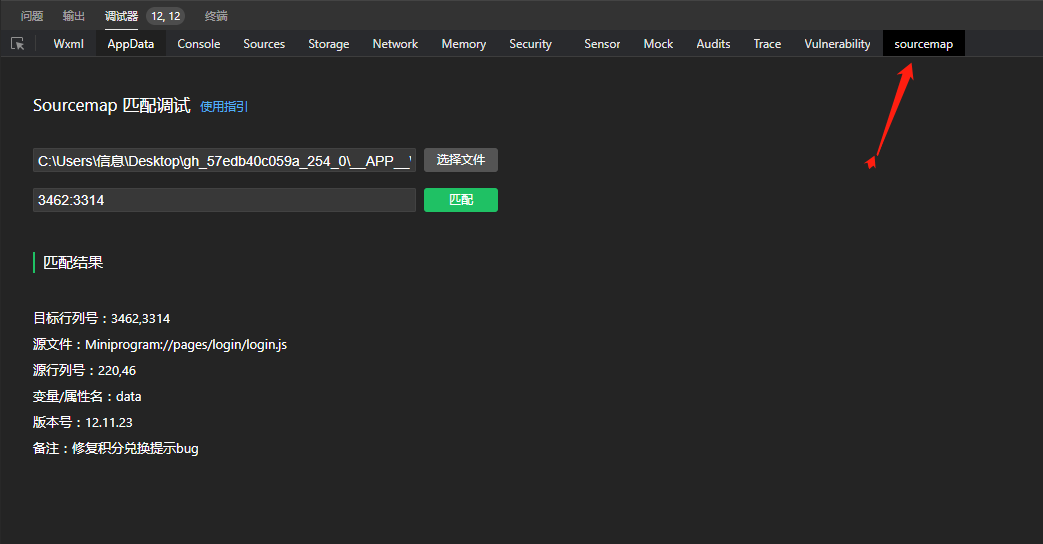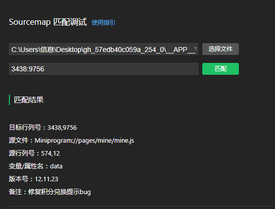 选中 _APP_文件中的 app-service.map文件,输入行号 3438:9756,匹配结果如下: