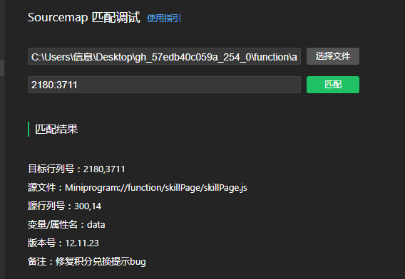 选中function文件中的 app-service.map文件,输入行号 2180:3711,匹配结果如下: