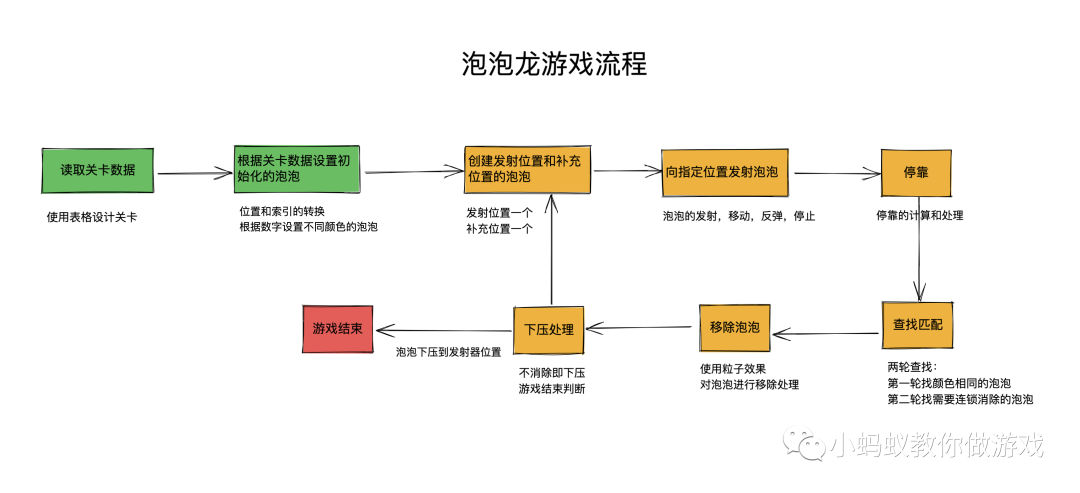 嗨!大家好,我是小蚂蚁。在经过了两个多周的折腾,泡泡龙游戏系列教程总算是告一段落了,今天的这篇文章主要梳理一下泡泡龙游戏的整个制作流程。