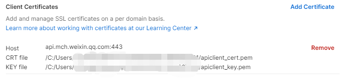 步骤二:点击Add Certificate,开始添加商户证书,因为例如退款接口的调用是需要携带证书的,所以要配置证书