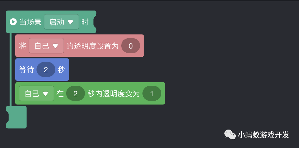对于场景中显示的文字,只需要在打开后先将其隐藏,然后2秒钟过后,再慢慢的显示出来即可。