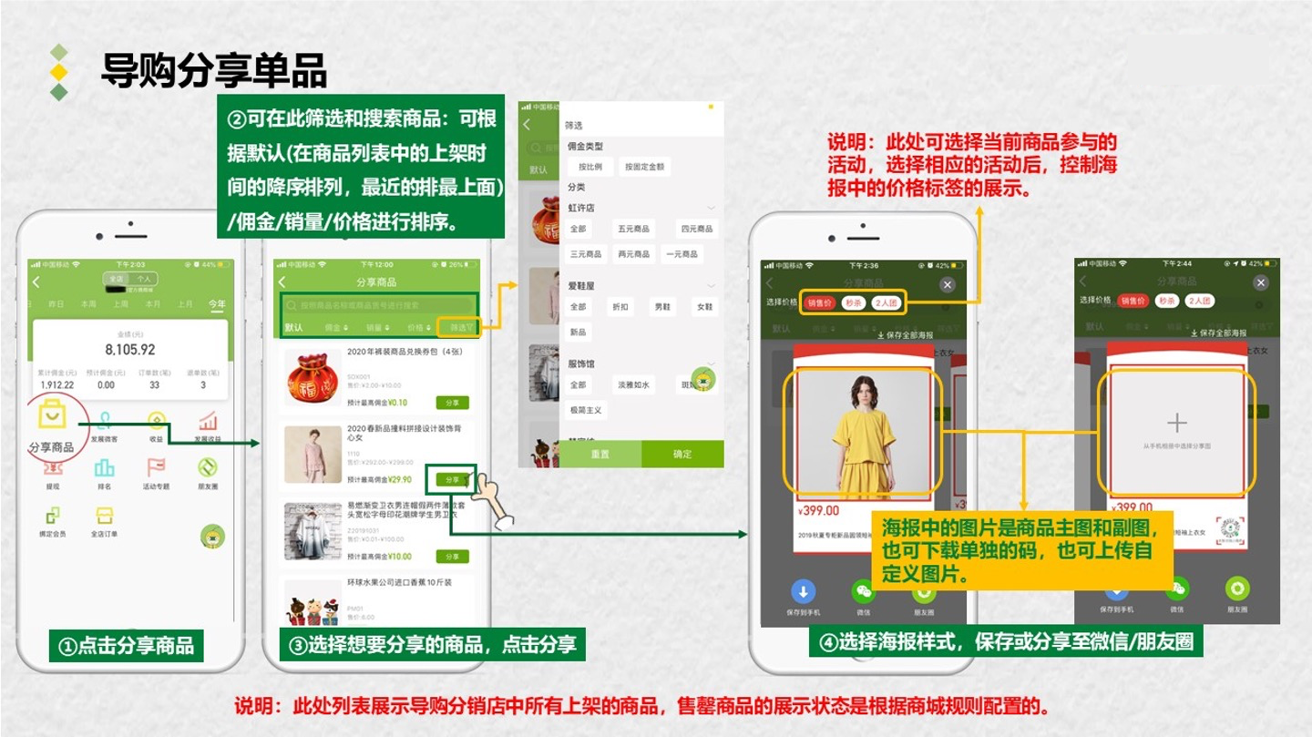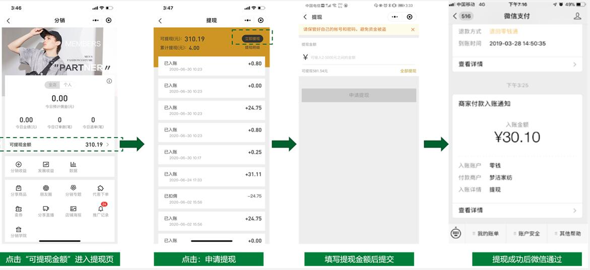 体现用户获得钱的前置场景和玩法,例如分销返佣场景下,需展示“用户购买 - 分享推广 - 获取佣金”等关键流程,必要时请在图片上加上相关说明和注释(请自行合并为一张大图)