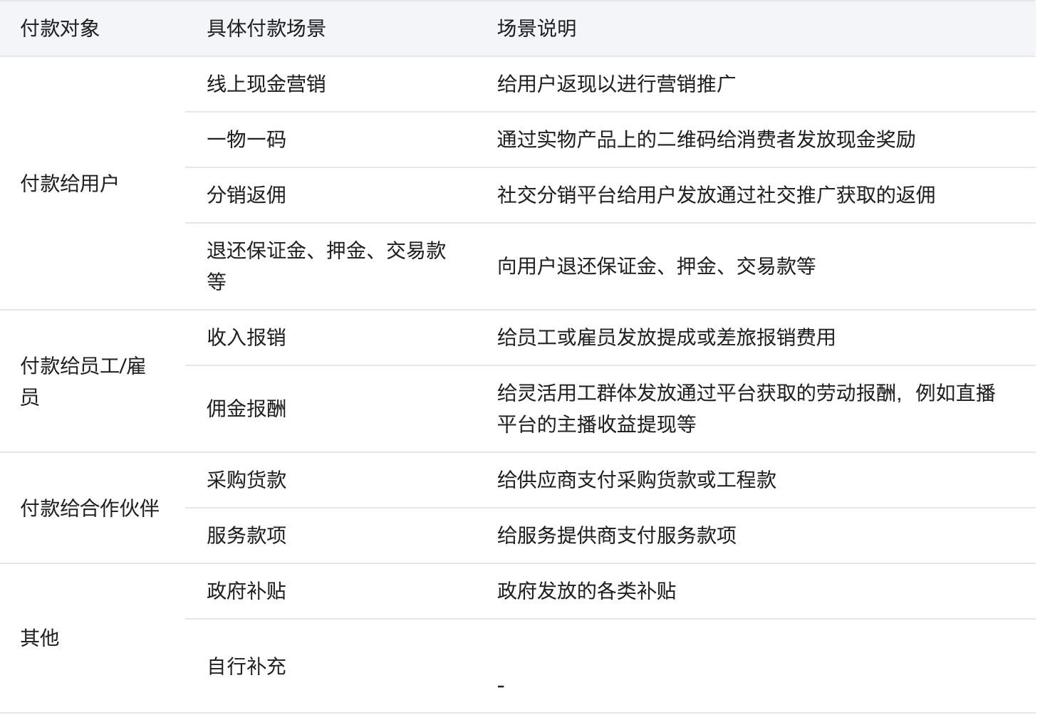 说明:请参考以下分类,选择最适合实际付款场景的分类。若无适合场景,可选择其他并进行说明。