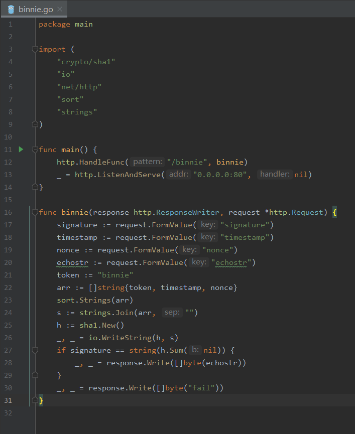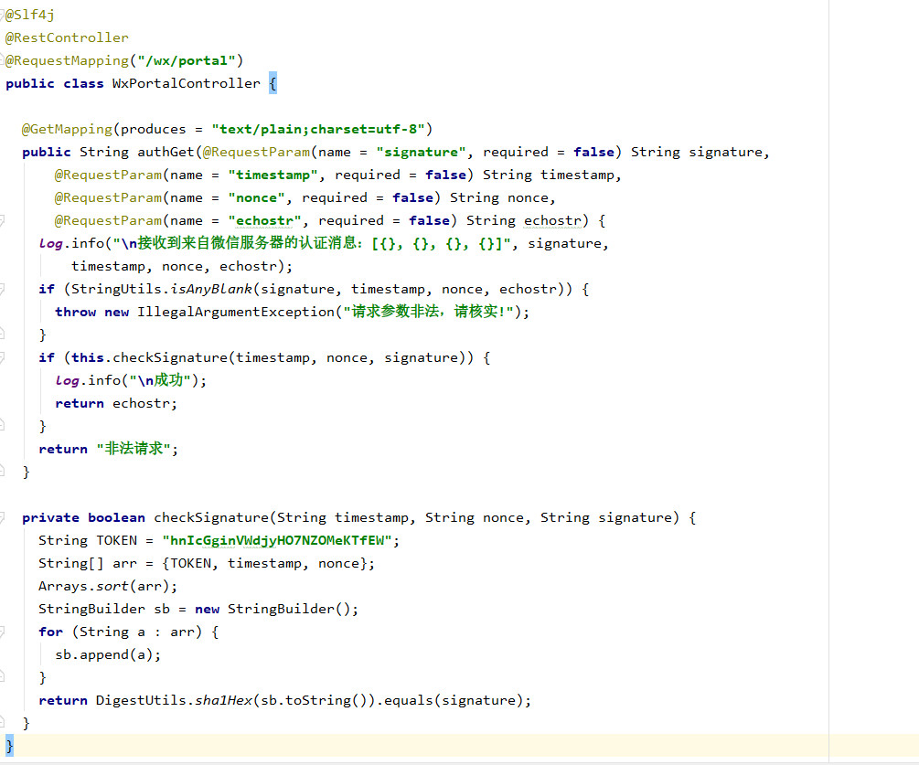 - 开发者获得加密后的字符串可与signature对比,标识该请求来源于微信