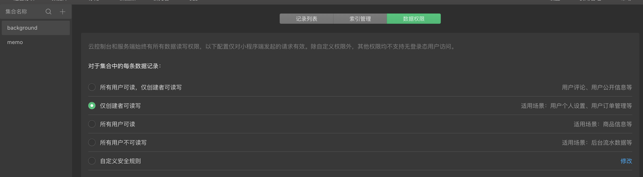 除了可以直接对文件进行管理之外,它还支持像云数据库一样设置权限。