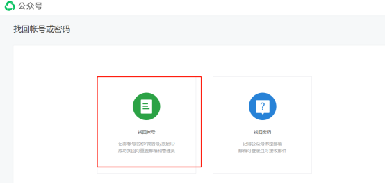找回账号:https://mp.weixin.qq.com/cgi-bin/readtemplate?t=forgetpwd/index_tmpl&token=&lang=zh_CN