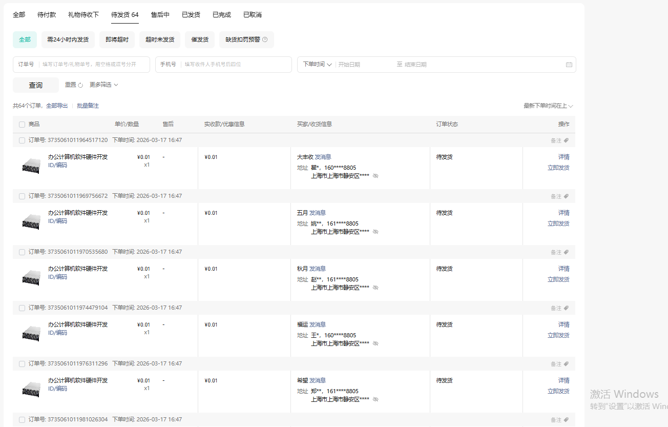 突然微信软件消息通知:批量弹屏提醒,微信小店有人支付订单,一看哇塞64个,我感觉下架商品。