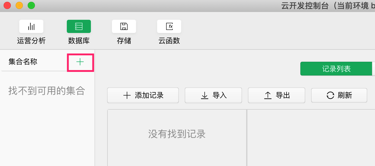 打开「云开发」界面,选择「数据库」。