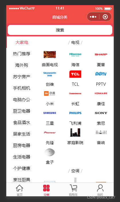 这种是通过原生的微信小程序制作的垂直导航栏,如果想要更好看的样式和效果,这里推荐一款小程序UI组件库——colorUI,我这里就放个它的效果演示图,有需要可以去下载它的源码,直接复制就能用了