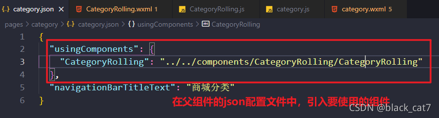 创建一个叫做CategoryRolling的组件,方便调用,你也可以叫其他名字