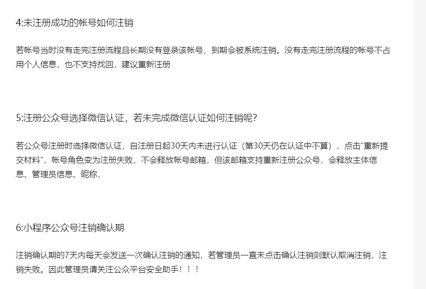 关注公众平台安全助手,然后一直不登录操作这个公众号,等待这个公众号给你发送确认注销的通知,没有具体时间,等待吧