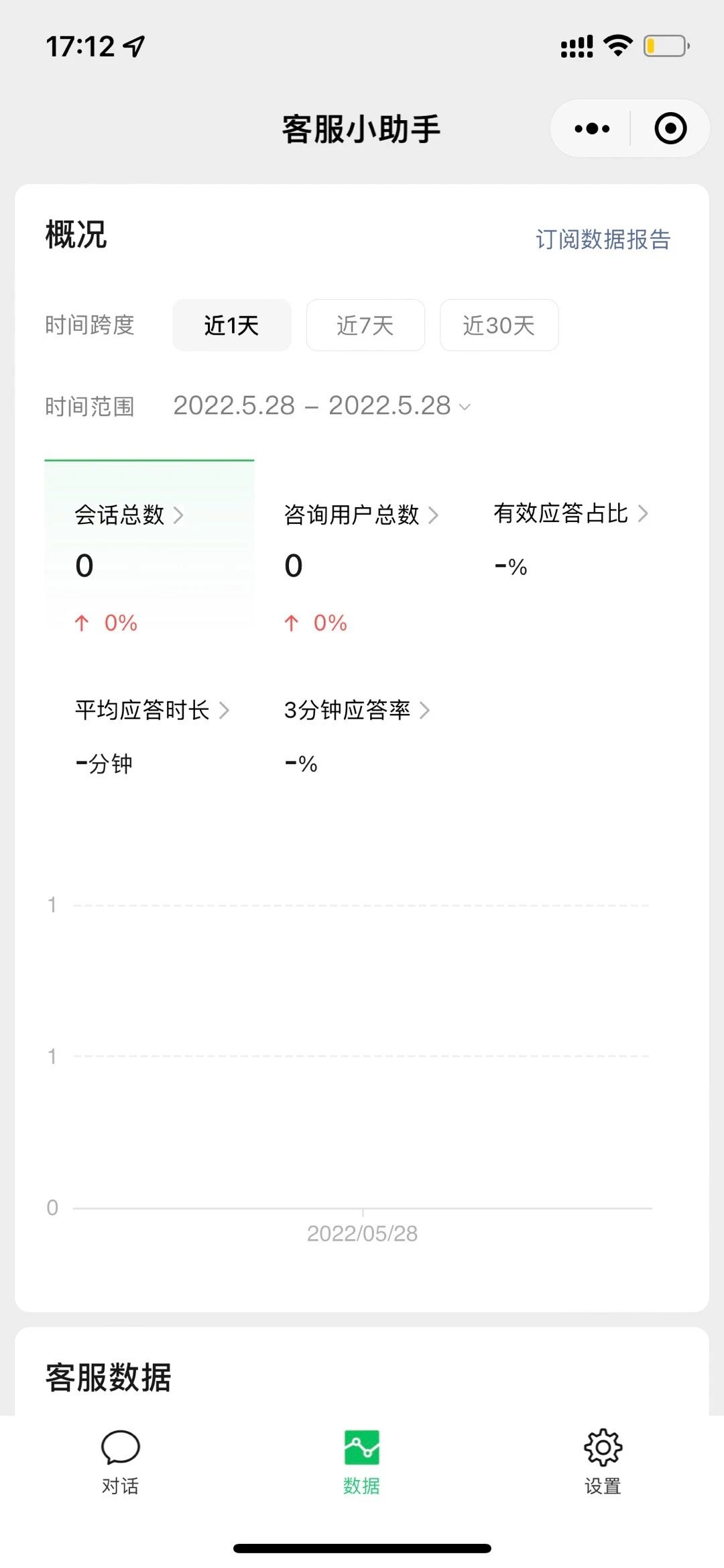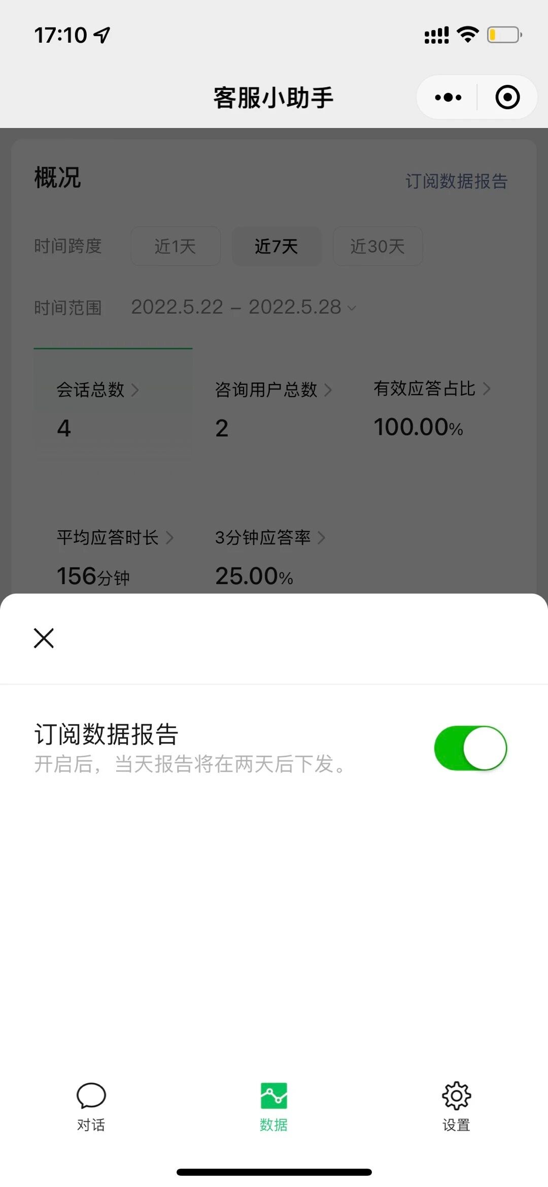 - 移动端(「客服小助手」小程序):数据 - 订阅数据报告 - 开启