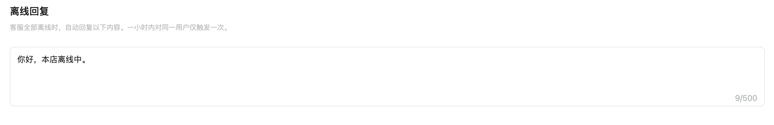 - 离线回复:当小程序内全部客服离线状态下,用户咨询消息,客服自动回复离线回复。支持客服管理员配置。