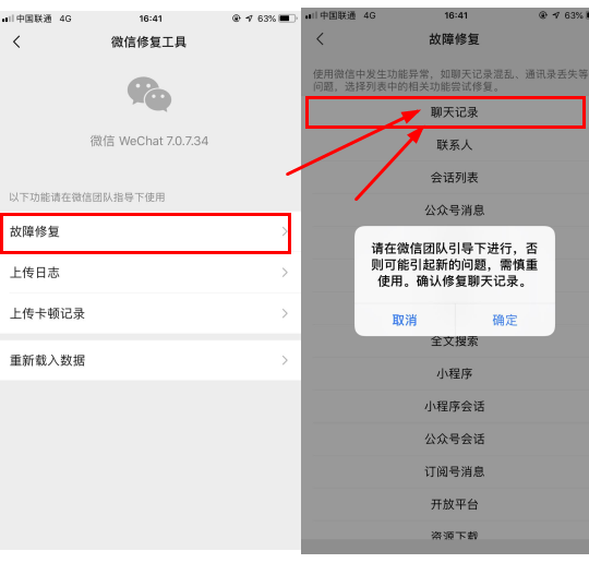 操作方法:打开微信设置–帮助与反馈–故障修复–聊天记录。在微信团队指导下进行恢复,否则会引起其他数据的丢失,最后点击确认修复。