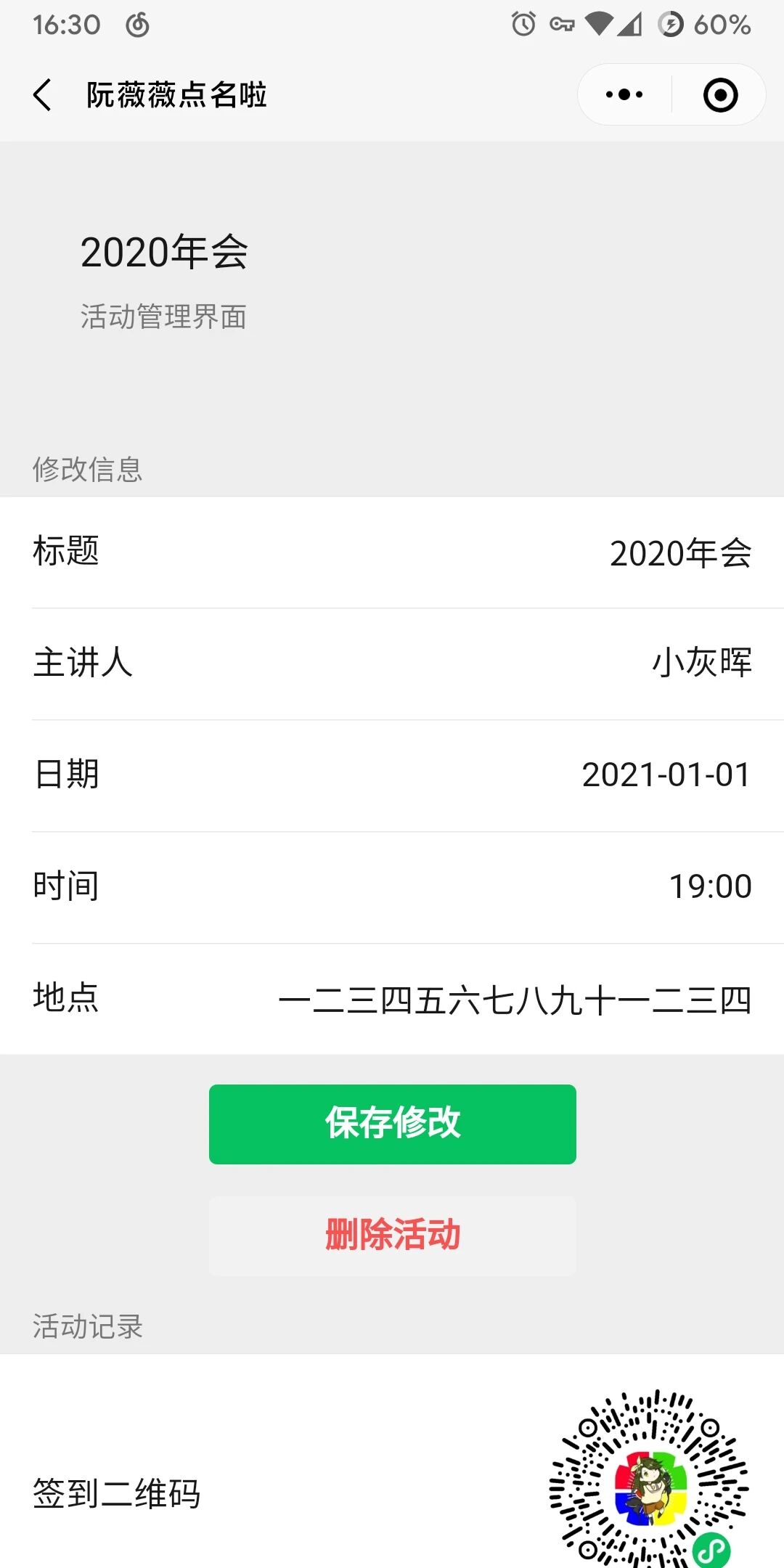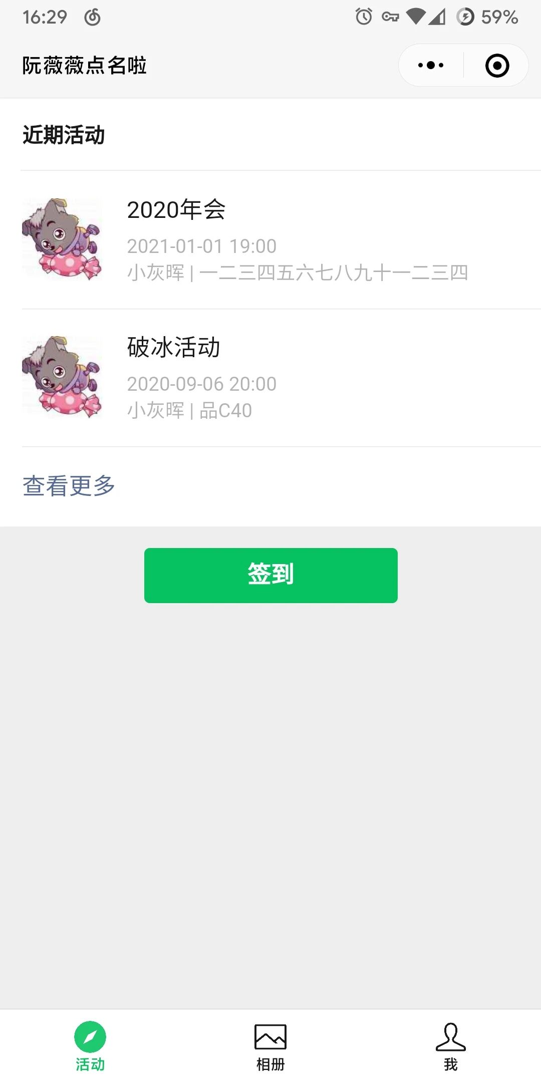 阮薇薇点名啦小程序为学校社团活动发布、查看、签到、管理提供平台。