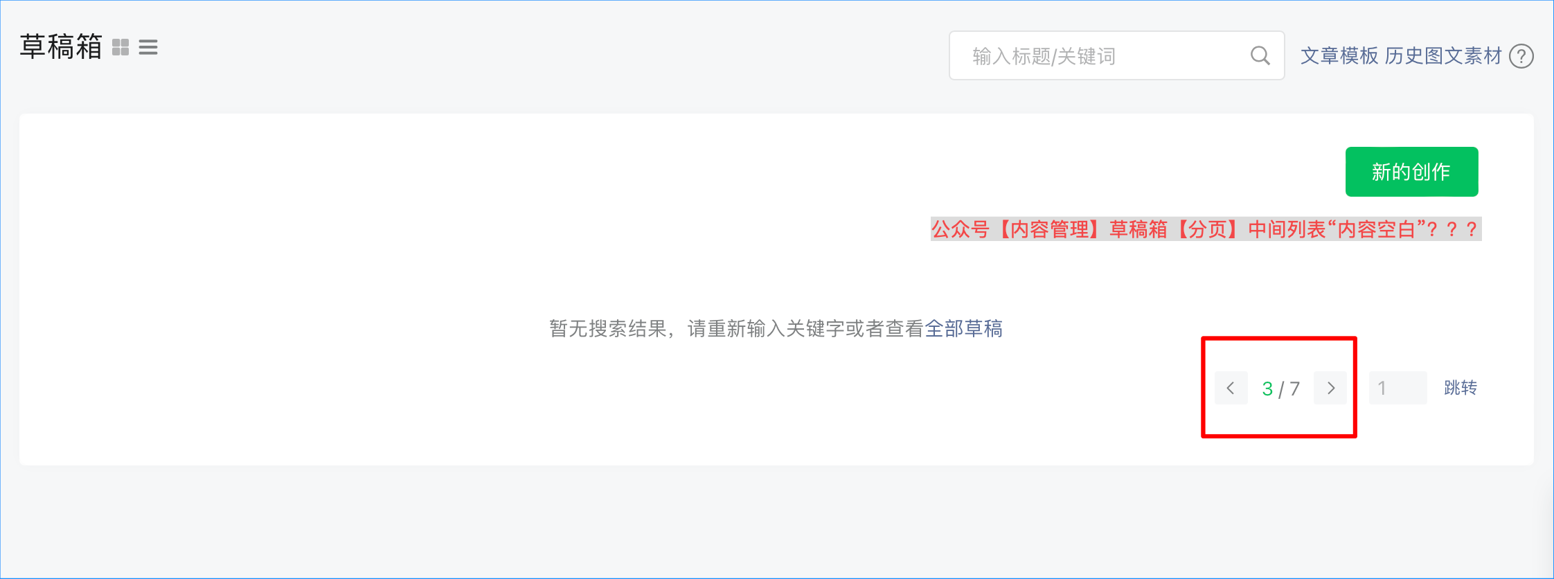 公众号【内容管理】草稿箱【分页】中间列表“内容空白”???如图所示