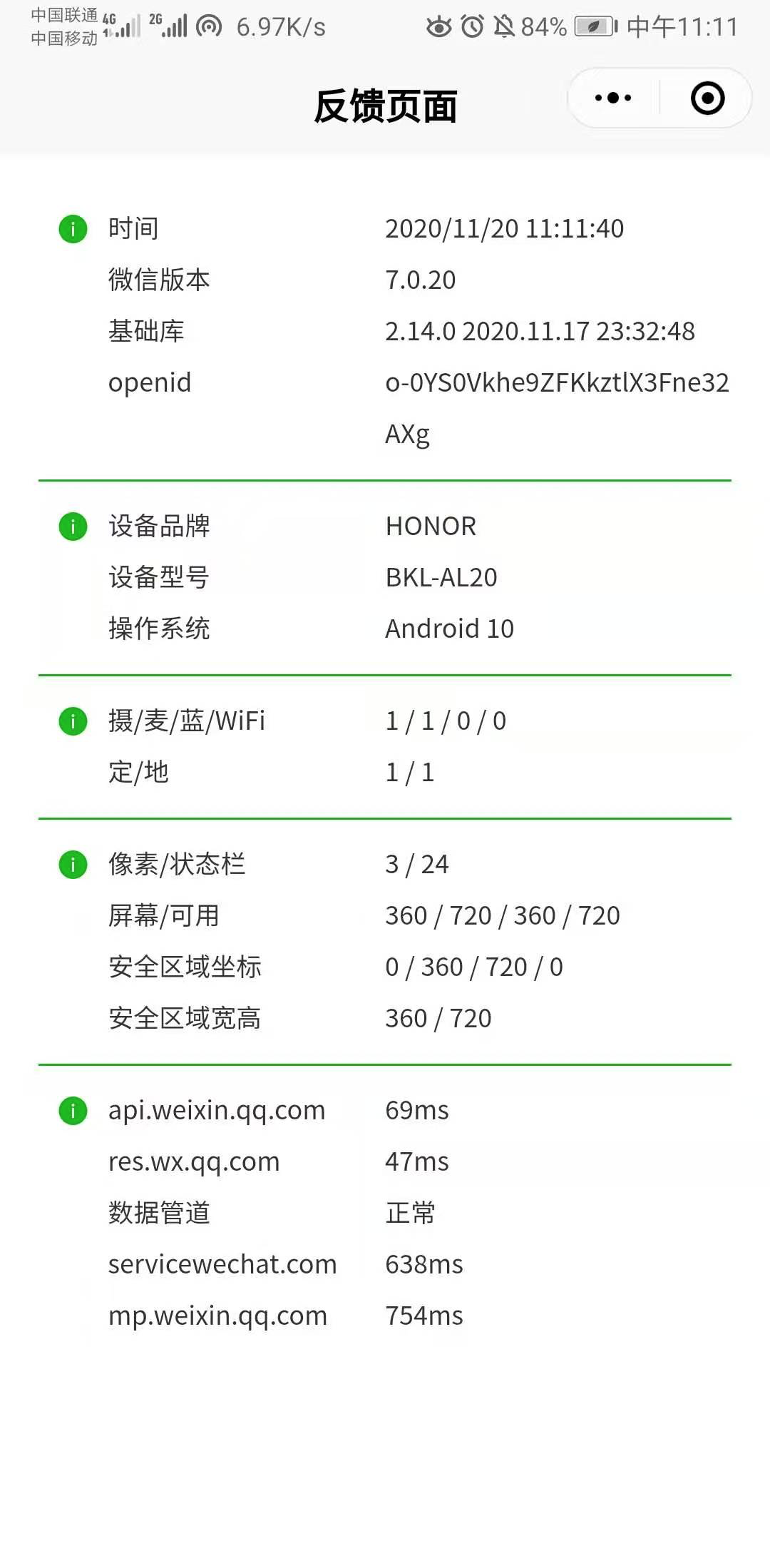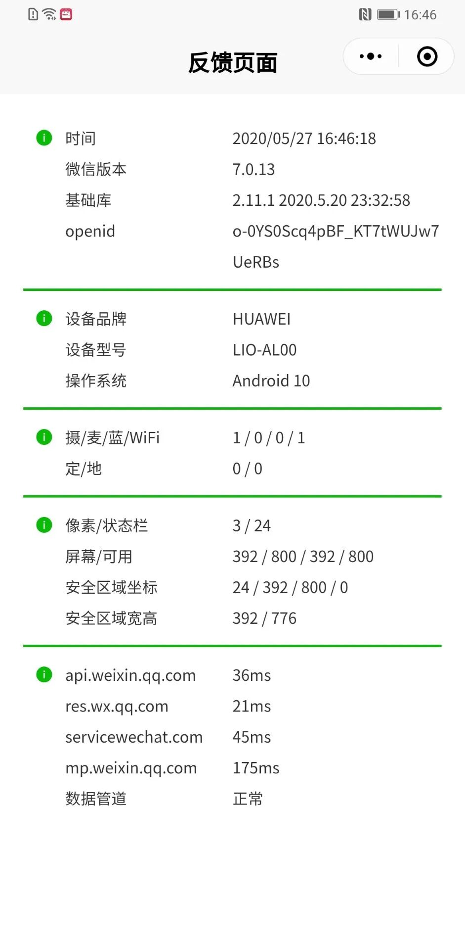 2、在测试小程序时,时常遇到手机兼容性问题,可以扫码获取手机具体信息