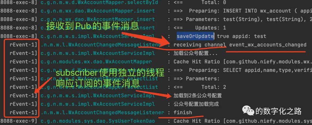 也就是服务1中更新了公众号账户数据,服务2、服务3、服务n会收到通知,然后各自更新内存中的公众号账户的数据。