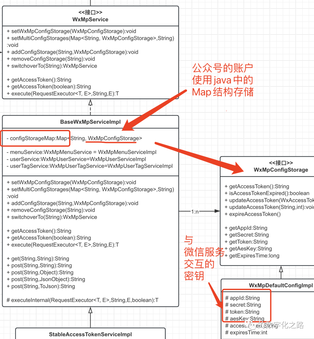 weixin-java-mp组件使用java Map结构存放公众号账户信息,使用如下所示的单体架构是可以的: