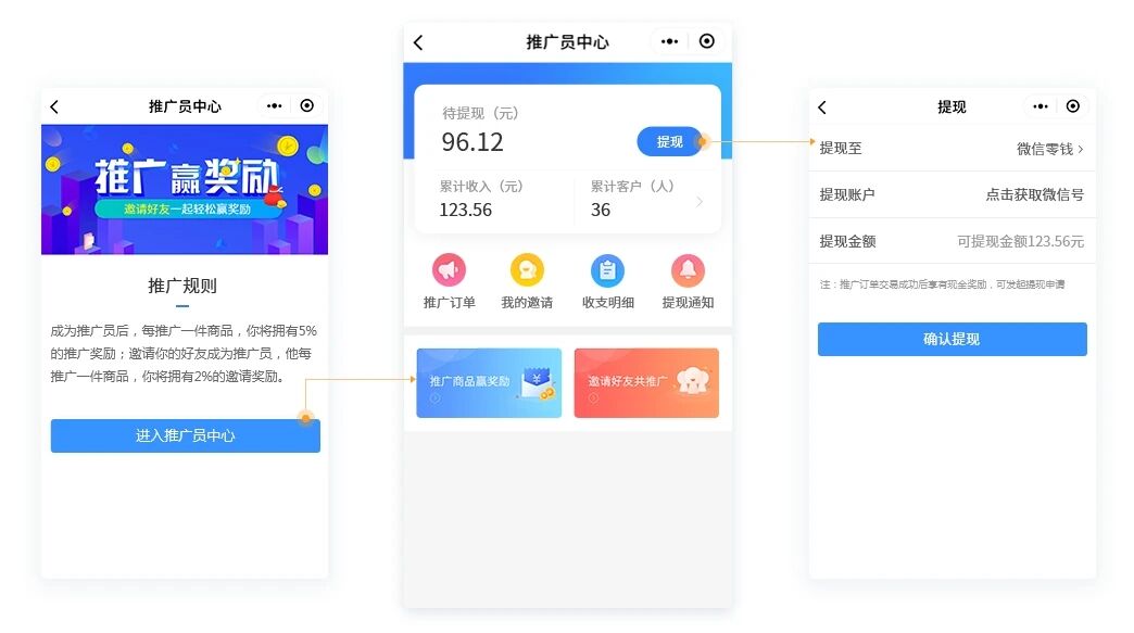 (3)分销:微信小程序支持二级分销,最被用户接受的是美妆、保健品等行业;