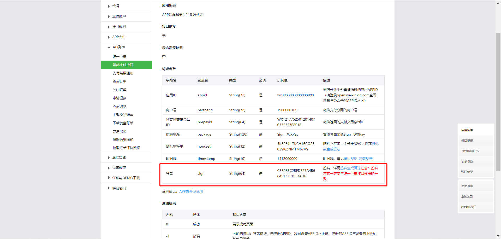 这个sign 需要对官网文档里的六个参数加密,同时还要加上密钥key,我就是没加,排查了一下午