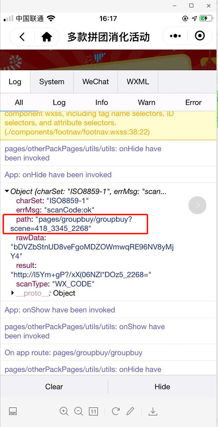 在原先的小程序项目里写一个单独的页面,通过调用 wx.scanCode(Object object) 方法,打开相机,扫小程序码,成功获取页面链接,激动!