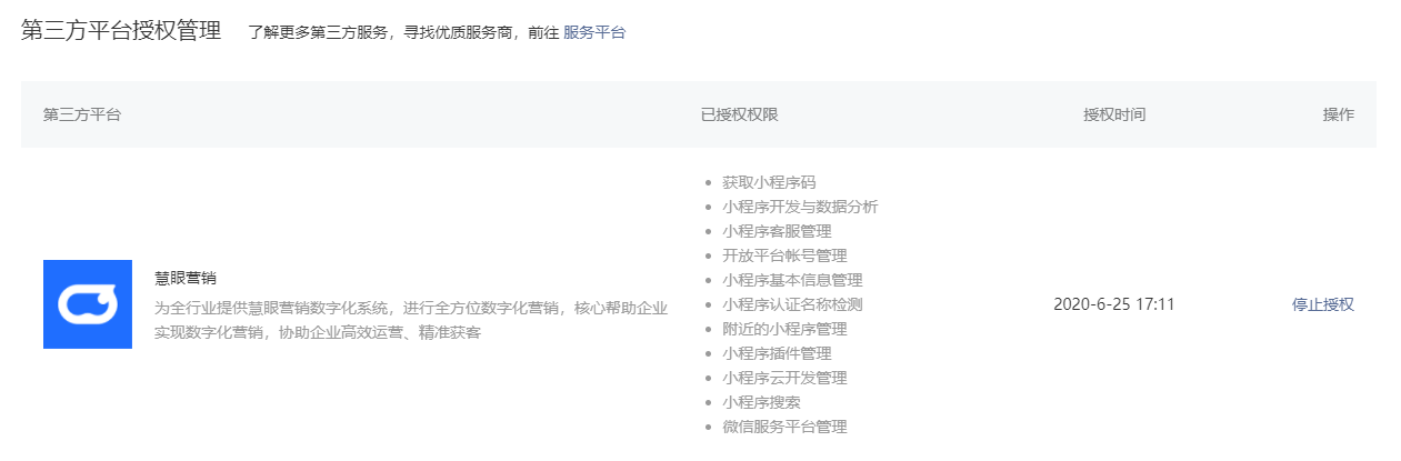 小程序停止第三方授权,配置没有影响,但是对应生成小程序码,微信登录,微信授权手机号码等的权限会失效