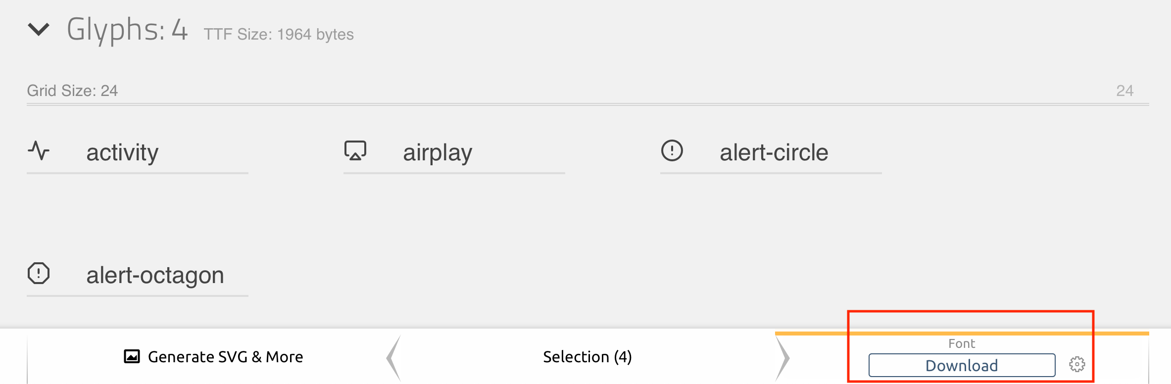 3、下载font文件,下载后解压成icomoon文件夹,找到/fonts/icomoon.ttf,接下来要用到它;