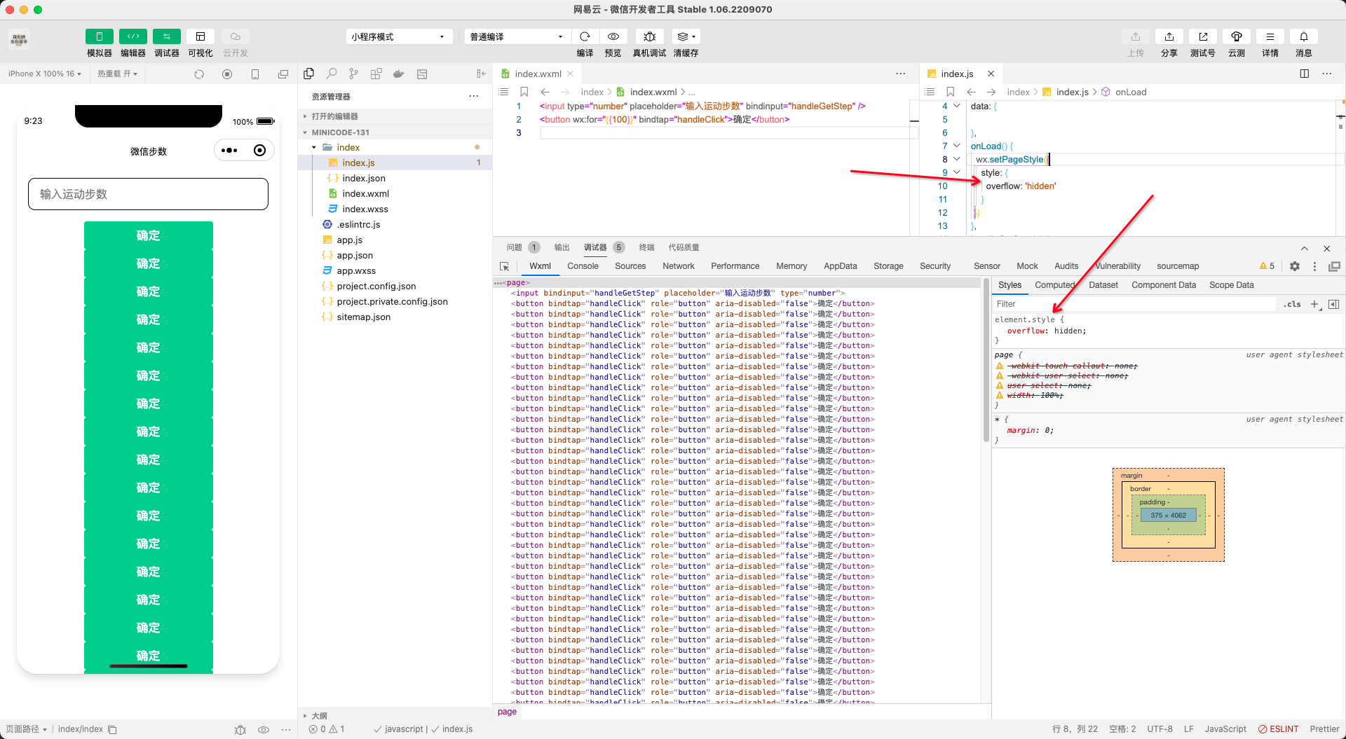 - 使用wx.setPageStyle设置overflow: hidden, 也可以实现给Page组件设置样式。)
