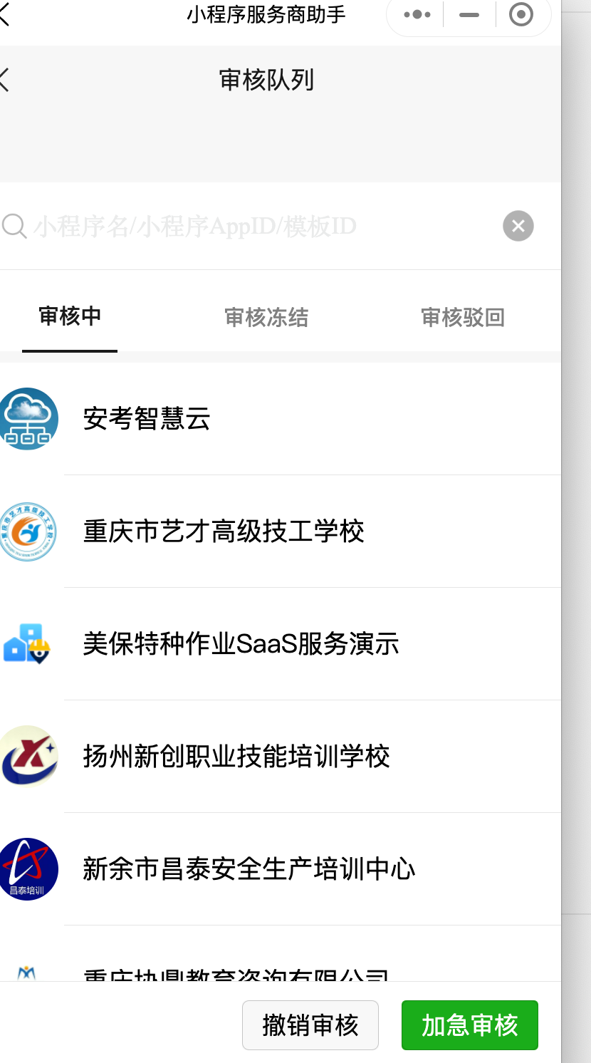 麻烦帮忙处理下,别到明天审核没过,小程序使用不了,我们要赔钱赔死了