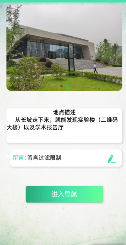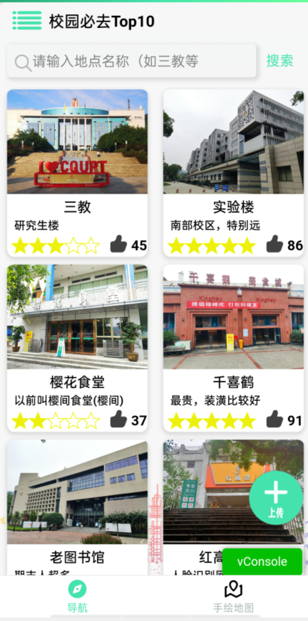 2)针对老生,本产品采用了将上传地点权限交给该校全体师生,审核权限交给管理员的方案,使地点可以实时更新位置信息以及街景图。