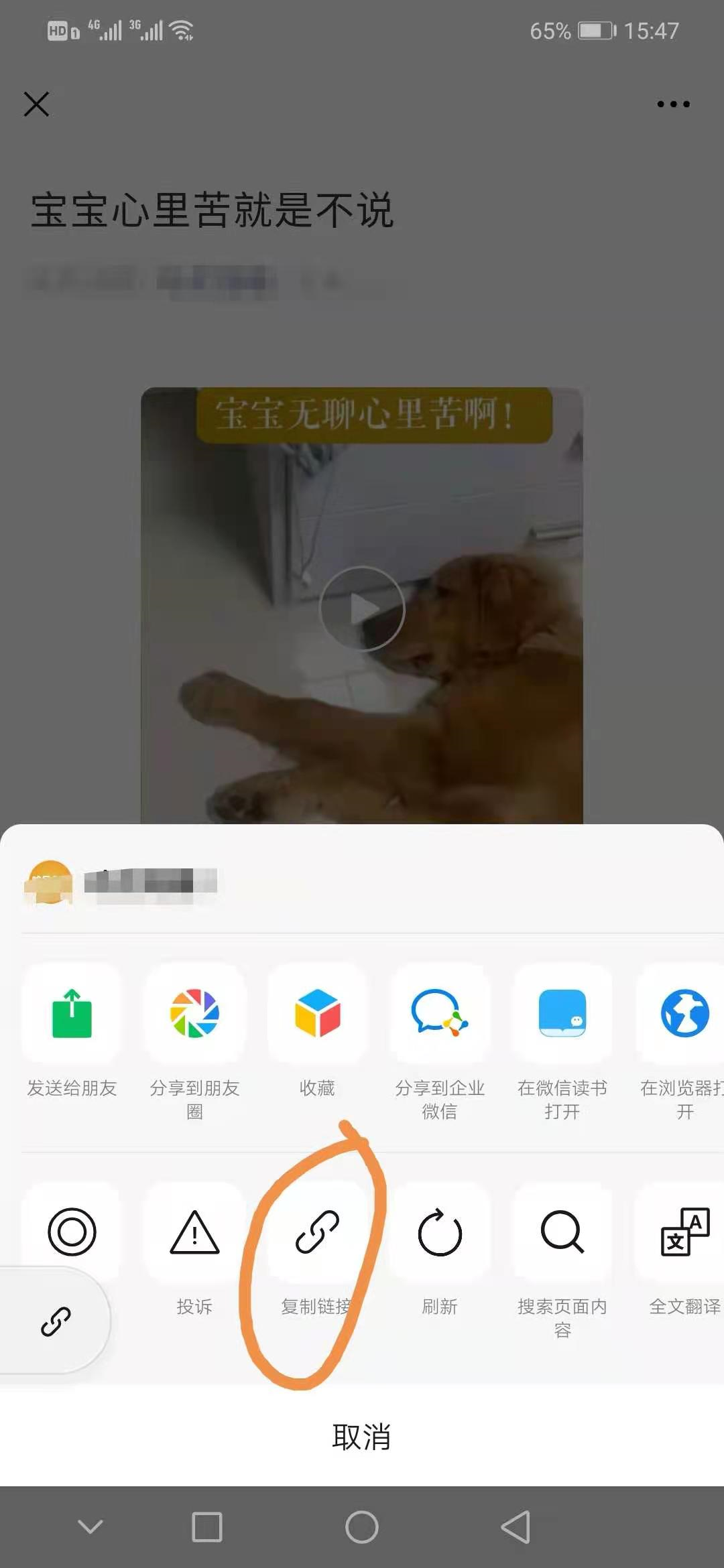 2,添加好文章后,微信打开这篇文章,复制该文章链接