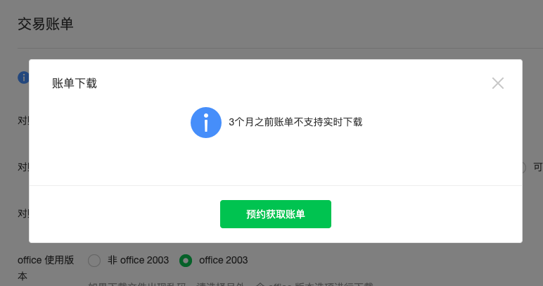 3、账单下载时间可以拉长,有可能对帐对之前的交易订单产生疑问,账单超过三个月下载不了,可能之前下载过,但是丢失找不到了,需要重新再下载对账。为什么不能大于 3 个月,性能考虑问题,如果是可以起止时间保持 3 个月?