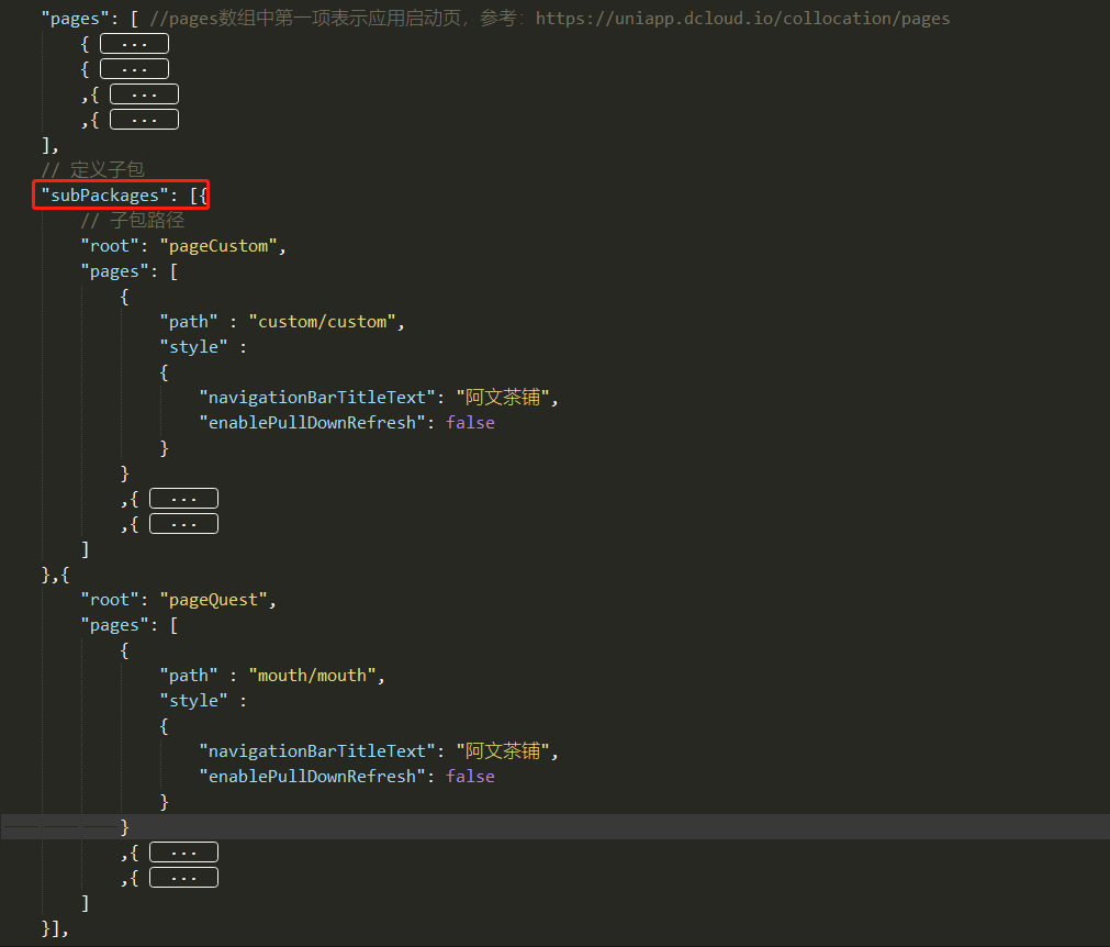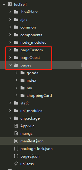 我分了两个子包,pageCustom 和 pageQuest。原来的pages里面只放了底部导航栏的页面