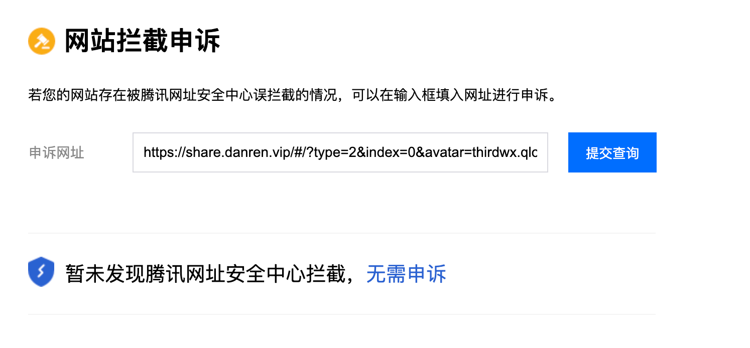 @微信朋友圈&外链咨询 @社区技术运营-wwen 我这个已经拦截好久了,查询也一直是没有问题的,页面申请恢复也申请了几次了,每次都没有回复。麻烦帮忙处理下吧,谢谢!