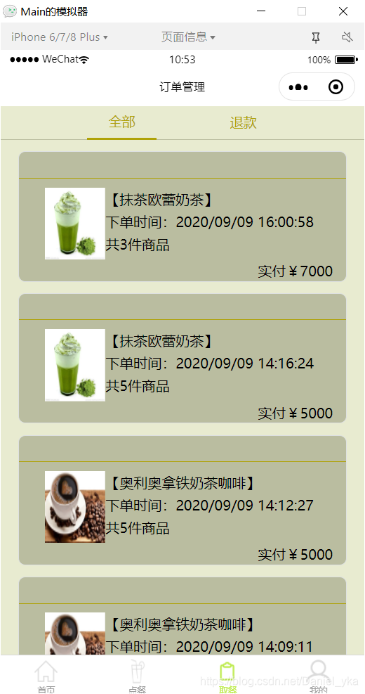 这个页面后端通过排序第一条永远是你刚下单的,下单后可以在页面下拉实现刷新页面数据,