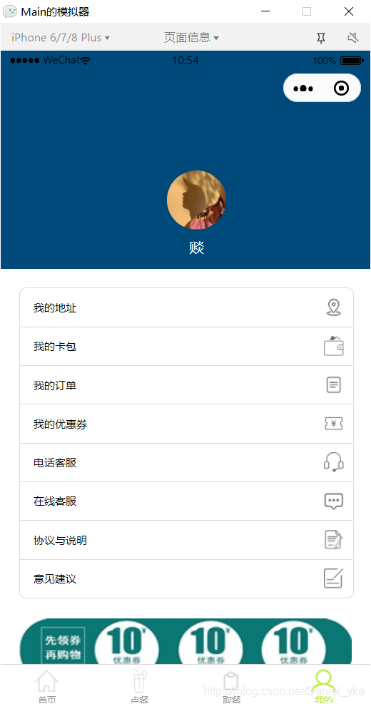 这个地方主要是用了弹性布局,个人中心用户需要通过授权后才能进入,电话客服会直接到手机的拨号盘进行拨号,在线客服会弹出一个消息聊天页面,与客服进行沟通,用户遇到问题时都可以随时咨询