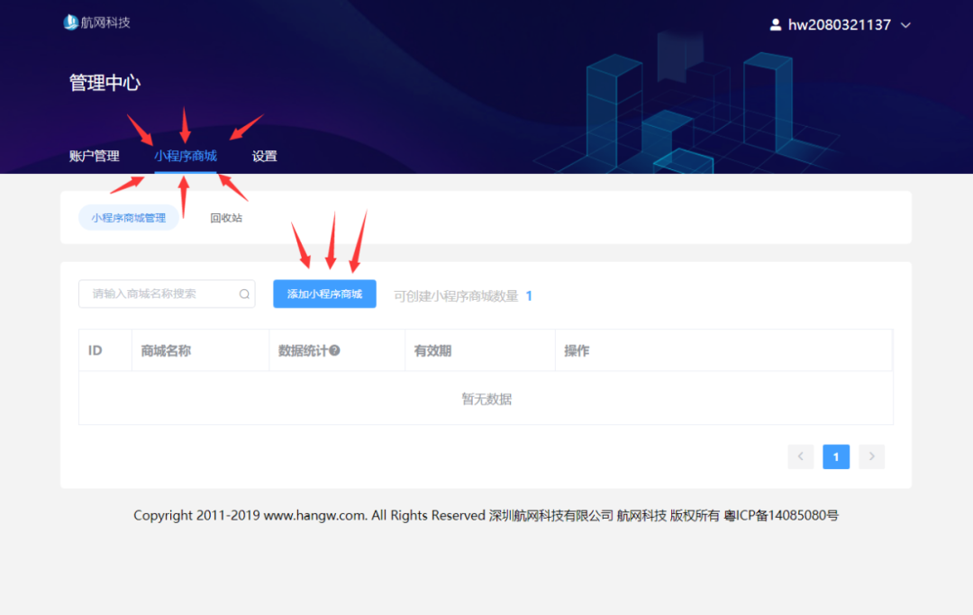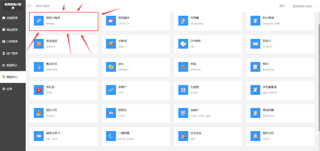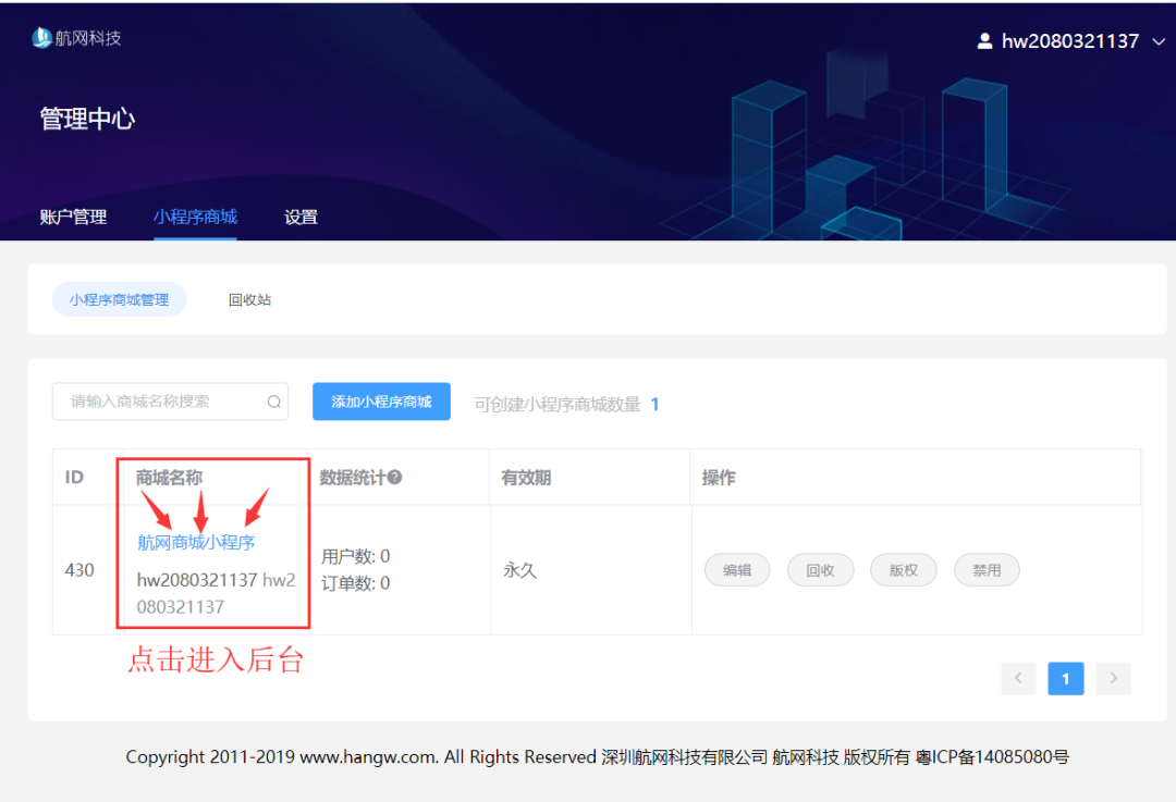 2.询问客服注册好后登录航网后台,进行添加小程序;