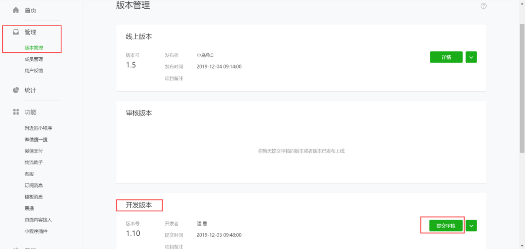 12.设置完就去倒回11步操作也行,或许去微信小程序--版本管理提交审核