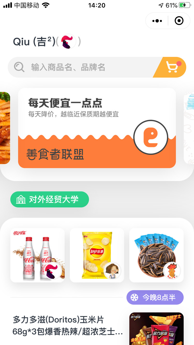 善食者联盟,一款基于商品保质期“动态定价”模式的小程序电商平台,商品按天计算价值,每天降价,越临近保质期越便宜。