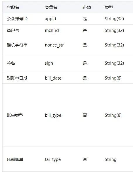 下载交易账单,请求参数不明确,使用官方的SDK请求可已,自己根据文档编写请求微信接口发现sign失败。