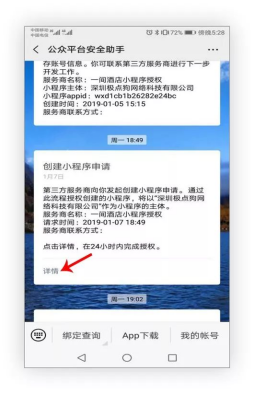 预计1个工作日内,法人将收到微信官方的验证通知(请在24小时内完成授权,过期失效),点击通知内的 详情 即可进入人脸识别,如下图: