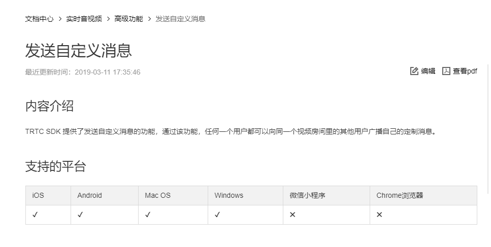 请问<webrtc-room> 组件中 小程序端和PC端能够实现自定义消息的互通麽,就是能否除了文字信息外,彼此还能发送接收图片文件信息?可是既然提供了自定义消息的接口操作 文档中为什么显示不支持呢