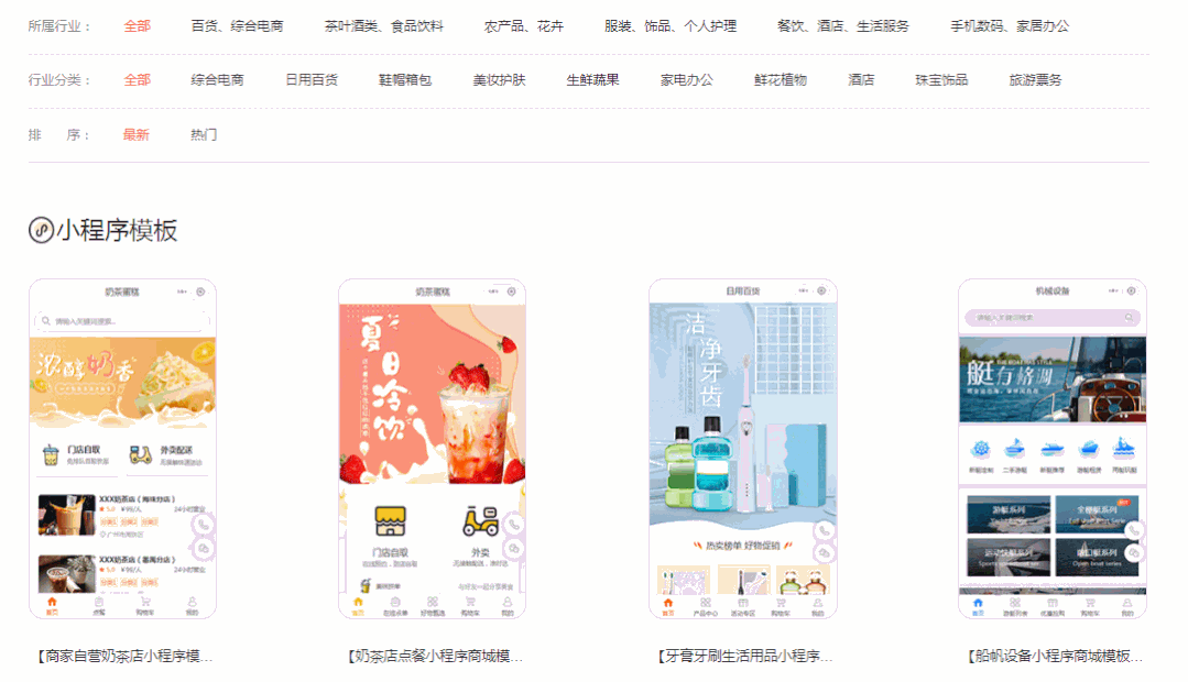 3)进入官网模板中心,根据自己的喜好和需求,挑选一款小程序商城模板;